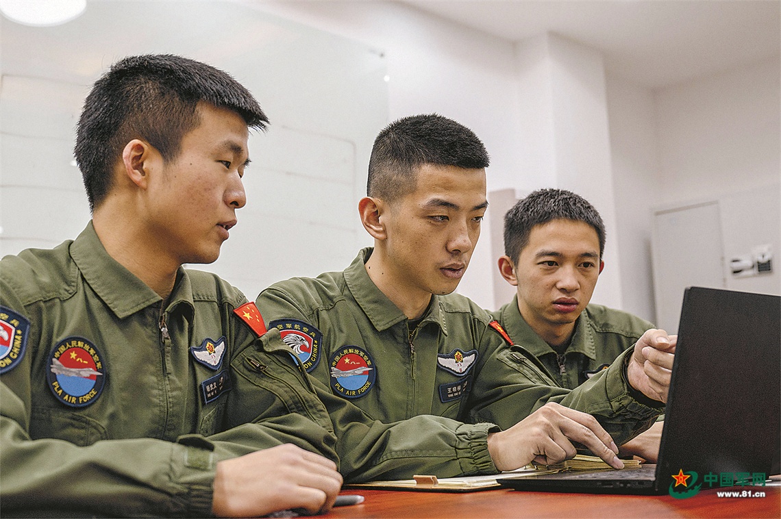 首轮训练结束,战机陆续返航。飞行员们走进讲评室,利用飞参数据和视频资料进行复盘,围绕打击目标特点展开战法研究。