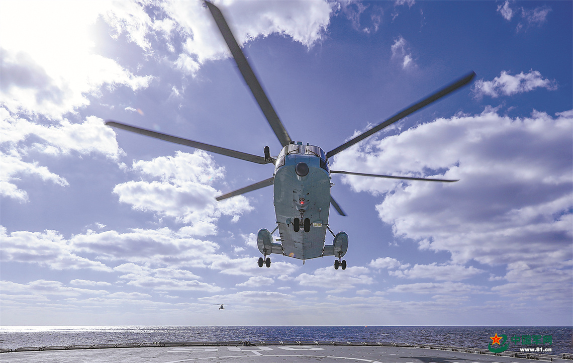 舰载直升机起降训练。