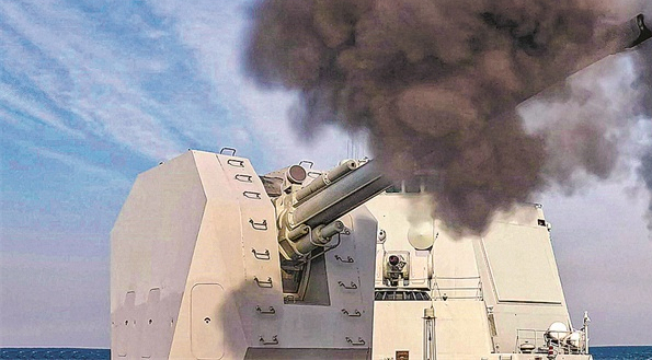 主炮战位接收指令,打击目标。