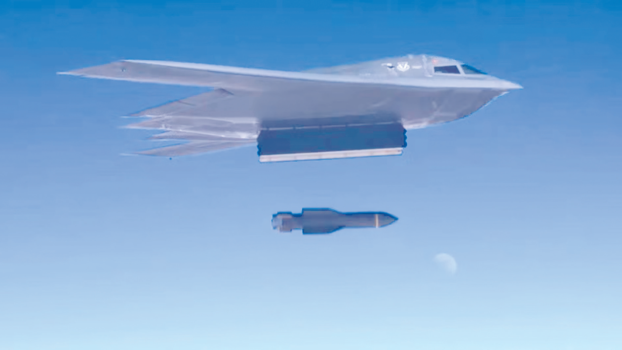 根据美国媒体此前的报道,伊朗的核设施、导弹生产车间和储存仓库已经基本实现地下化,部分设施深入地下上百米,常规空袭根本无法对其造成威胁。但“防务周刊”网站注意到,B-2能携带美军最强大的常规武器之一、3万磅级GBU-57钻地炸弹,后者足以摧毁地下60米深处的加固设施。美军还设想利用两枚GBU-57钻地炸弹前后攻击同一地点的方法,摧毁地下更深处的目标。报道认为,美军派出B-2轰炸机前往迭戈加西亚,也不乏针对伊朗地下设施的目的。