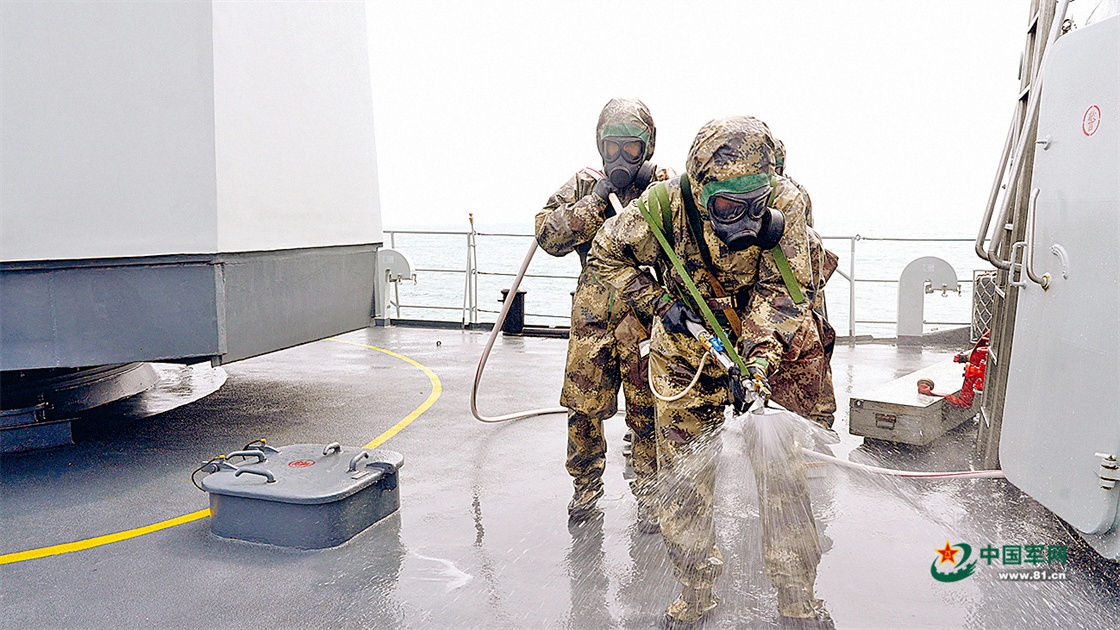茫茫大海,就是锤炼作战利剑的“淬火池”。“前方海域发现异常烟雾,防化学武器部署!”机动途中,新的“敌情”传来,编队舰艇开启全舰水幕系统,官兵快速穿戴防护装具,投入新一轮训练……