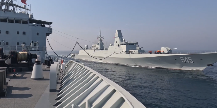 近日,北部战区海军某作战支援舰支队组织多课目海上训练。训练中,东平湖舰前出为漯河舰、西宁舰等舰艇实施海上补给。来看“一横一纵”的海上补给现场!(姜坤龙 韦玮 周远志 卢晨昊)