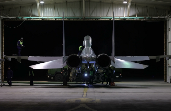 伴随着熹微的晨光双方战机稳稳落地,飞行员立即走进战术研究室展开评估,逐帧回放对抗全程视频,量化分析每个飞行动作具体参数。机务人员、保障车辆迅速出动,紧张有序,细致完成各项工作,现场实战化练兵氛围拉满。