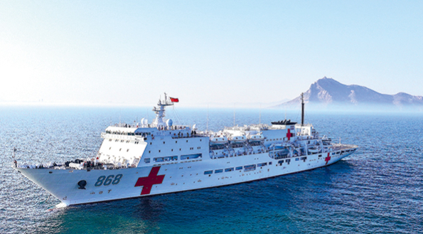 初夏黄海,波涛翻涌。一艘“大白船”破浪前行,洁白船身上的鲜红十字和“868”舷号,分外醒目。