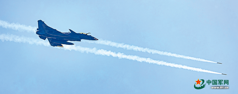 “发射!”接到打击指令,机翼两侧瞬间火光闪烁,两枚火箭弹拖着尾焰直扑目标。“双发命中!”监视屏幕显示,靶标处腾起两团浓烟,目标被成功摧毁。完成任务后,飞行员立即操纵战机实施大坡度转弯,退出攻击航线。与此同时,编队另一架战机增速前出,对其余目标展开火力打击。