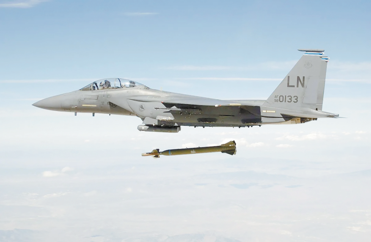 美国空军F-15战斗机投掷的5000磅级GBU-28钻地炸弹