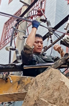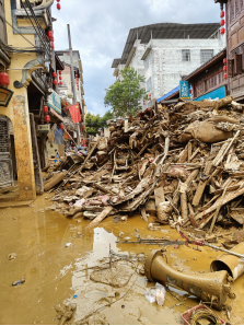 6月29日,赶了一百多公里路的杨杰唯顾不上休息,第一时间投入清淤重建工作中,帮助当地居民紧急转移物资,徒手疏通下水道……当听闻老城区受灾情况更为严重,迅速转战老街,与贵州总队武警官兵、施秉县武装部、榕江县领导干部、镇远县志愿支援小队并肩作战,共同开展重建工作。