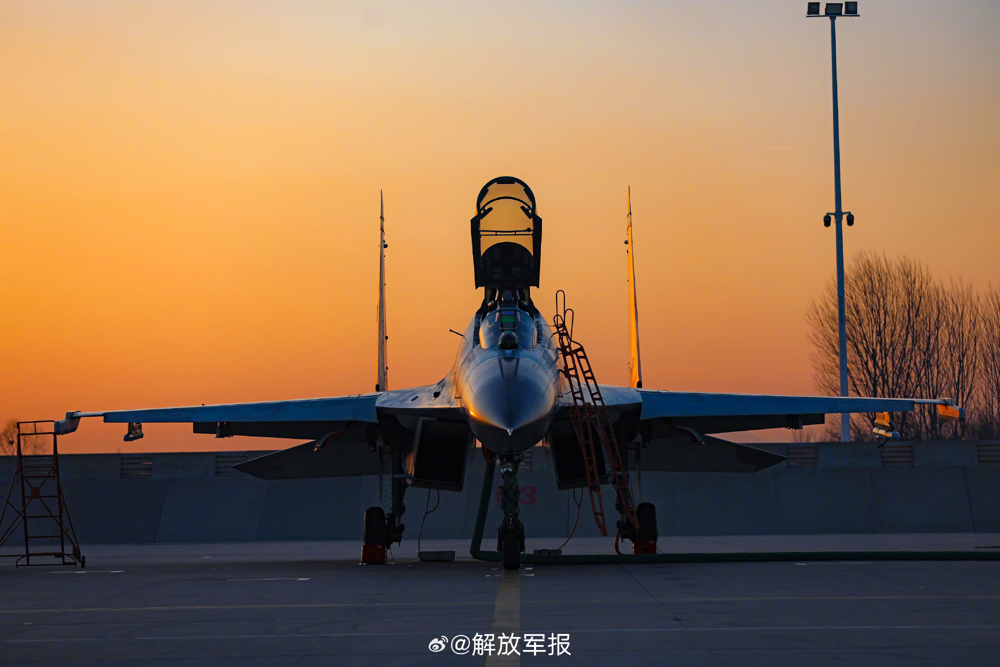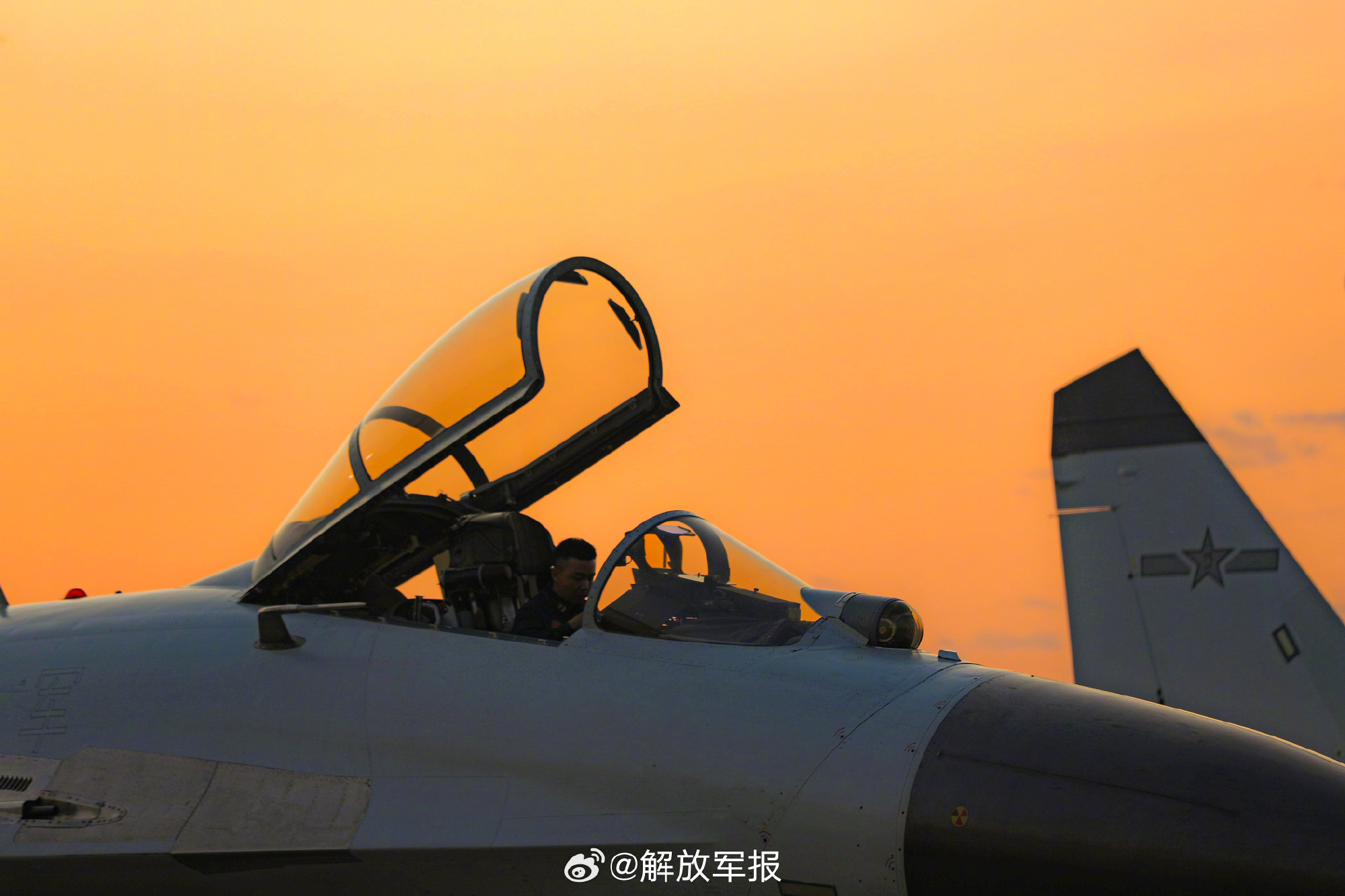 战机与渐变色的天空同框,惊艳!