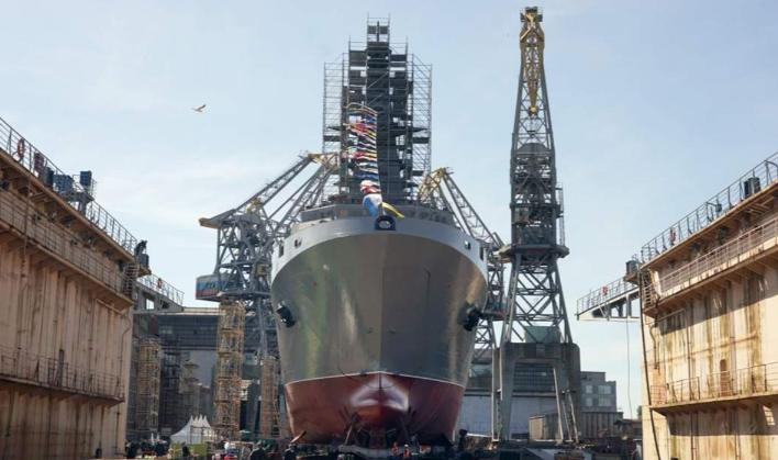 据俄罗斯《消息报》网站7月8日报道,“谢尔盖·卡巴诺夫”号11711型大型登陆舰的龙骨铺设仪式8日在加里宁格勒的扬塔尔造船厂举行。俄罗斯联合造船集团旗下涅瓦设计局副总经理安德烈·伊夫列夫告诉《消息报》,该舰或配备针对无人艇和无人机的防御手段。专家们指出,俄海军对此类舰艇的需求相当迫切。
