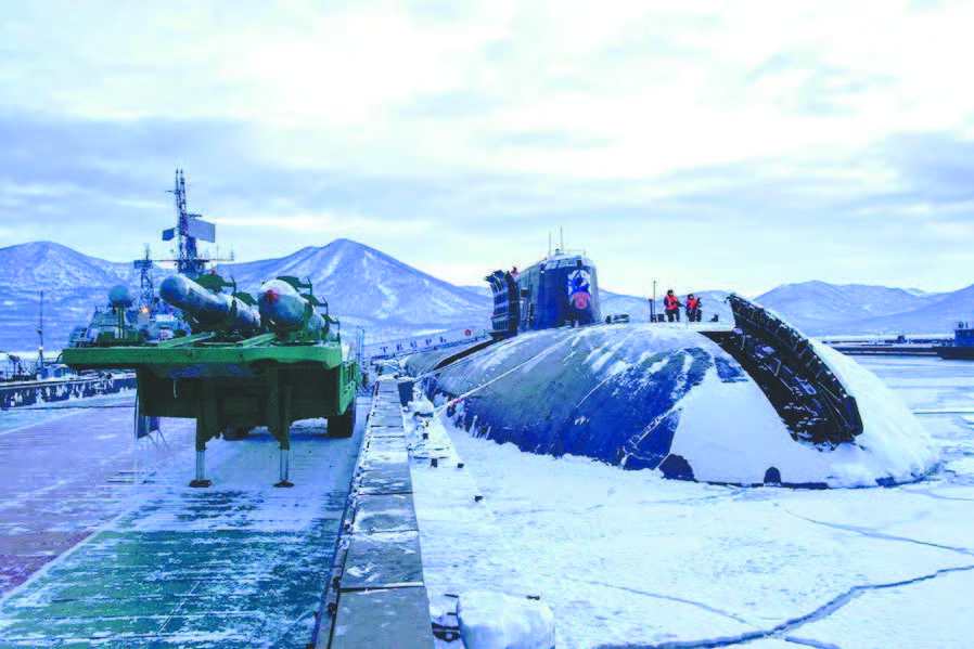 停泊于雷巴奇核潜艇基地的俄海军核潜艇。