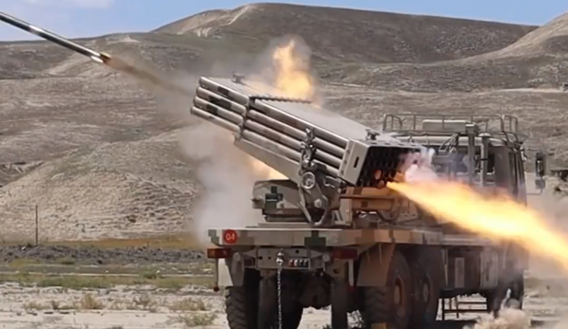 大漠戈壁,新疆军区某团火箭布雷车实弹射击。摩托化行军机动至百余公里外的陌生地域,官兵装填弹药、调整发射参数,火箭布雷弹向着十余公里外的目标飞去。一声巨响后,地雷被成功布设。看现场。(记者薛道远 庄继红 纪忠来 严文苹)