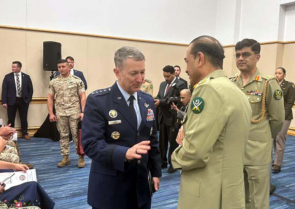8月10日,巴基斯坦陆军元帅穆尼尔与美军参谋长联席会议主席丹·凯恩会面。(视觉中国)
