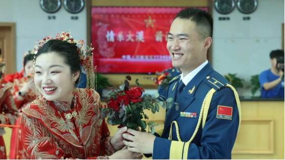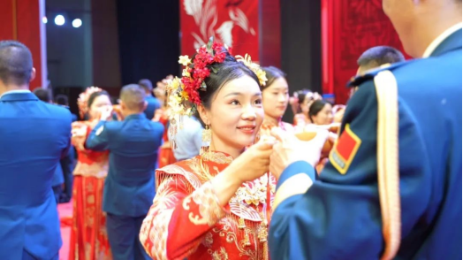 当新郎用秤杆轻轻挑起新娘的红盖头