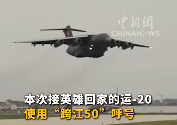 据介绍,运-20使用“跨江50”呼号,4架护航的歼-20使用“凯旋”呼号。在运-20回国起飞、进入我国领空,以及与歼-20编队等过程中,将进行空空和空地通话。这些设计,蕴含着人民空军对先烈跨越时空的深切缅怀和崇高敬意,也是用实际行动告慰先烈:祖国没有忘记你们,人民没有忘记你们,历史没有忘记你们。