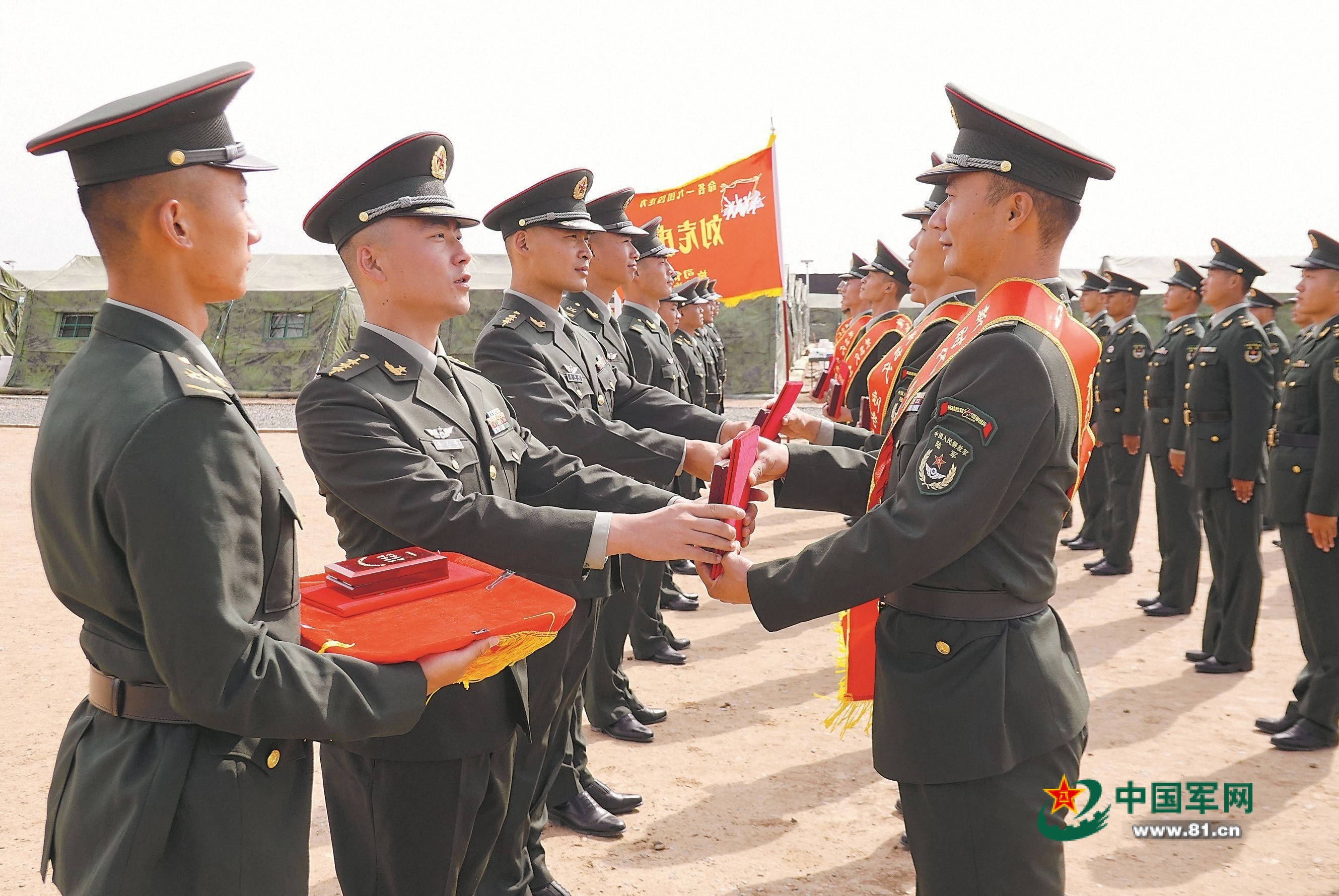 连队在驻训场举行仪式,欢迎受阅官兵载誉归来。