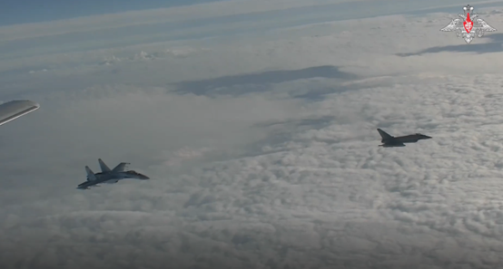 声明还称,此次飞行时间超过5小时,俄空天军苏-35S与苏-27战机伴飞护航。部分飞行航线有其他国家军机对俄轰炸机进行伴飞。