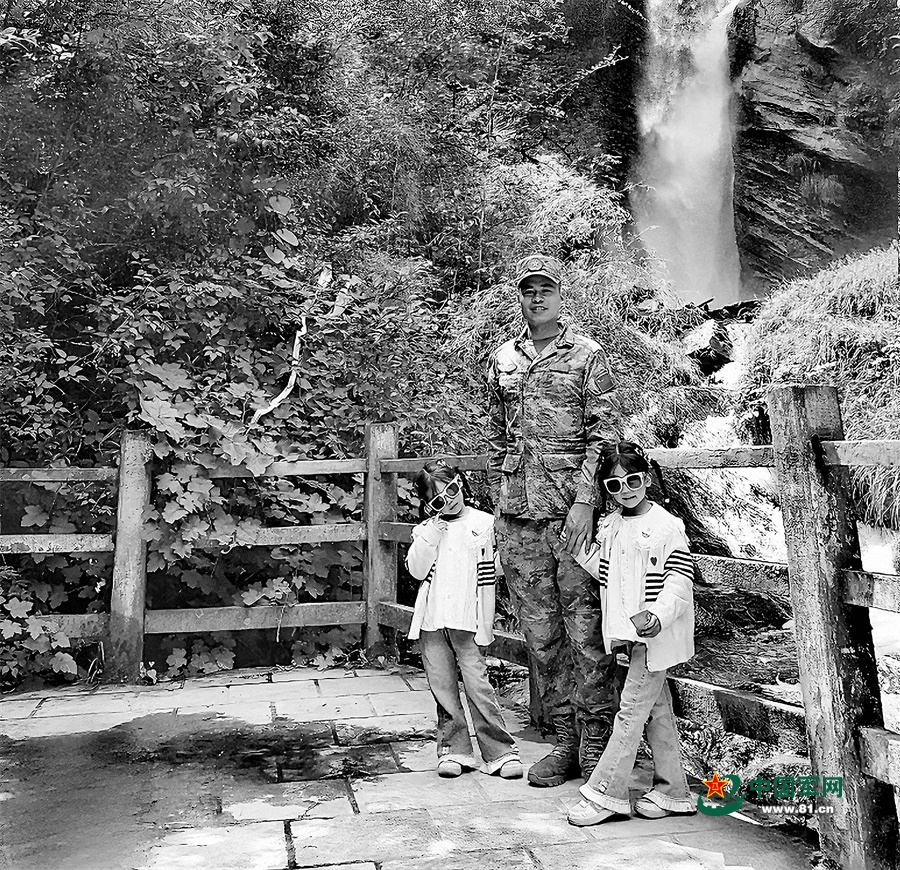 刘波与女儿在哨所驻地合影。