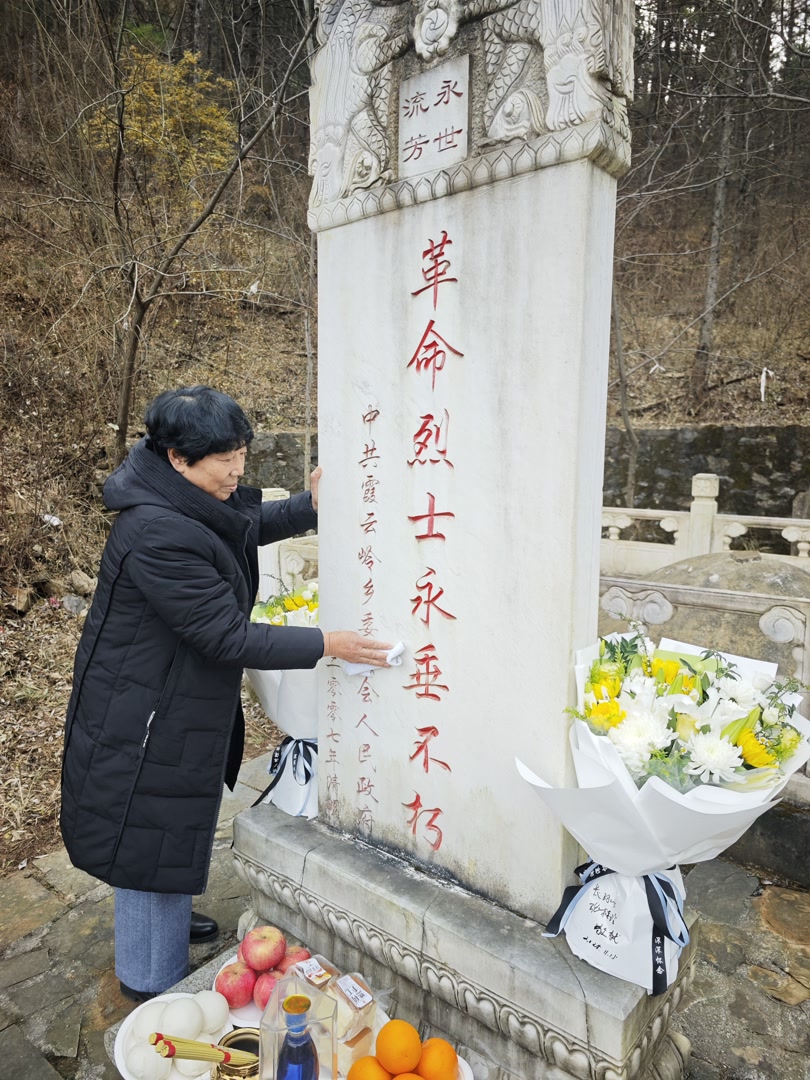 11月15日,在张其羽烈士牺牲85周年纪念日当天,张桂玲、郭晶等一行6人专程从河北、天津、北京等地前往堂上村,祭扫亲人。