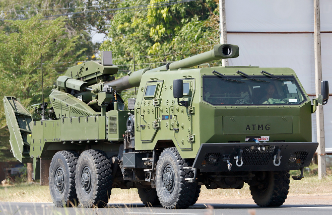 9日,泰国军队的自行榴弹炮在边境地区移动。(视觉中国)