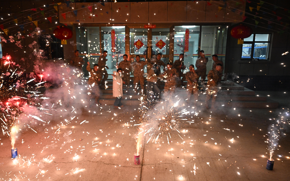除夕夜,蒙明涛带着妻子黄歆一起放烟花。这个南方军嫂第一次在军营度过了一个难忘的新年。