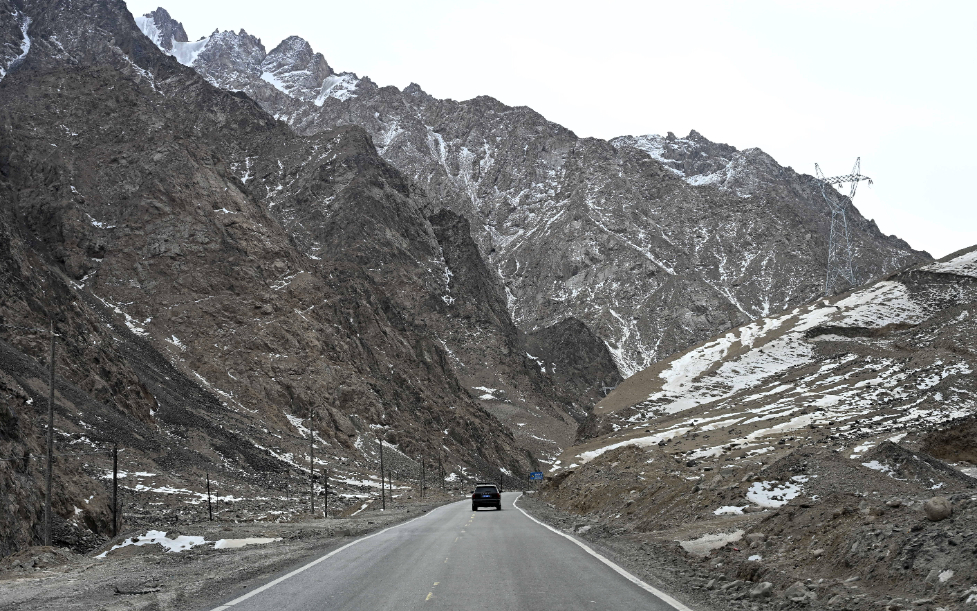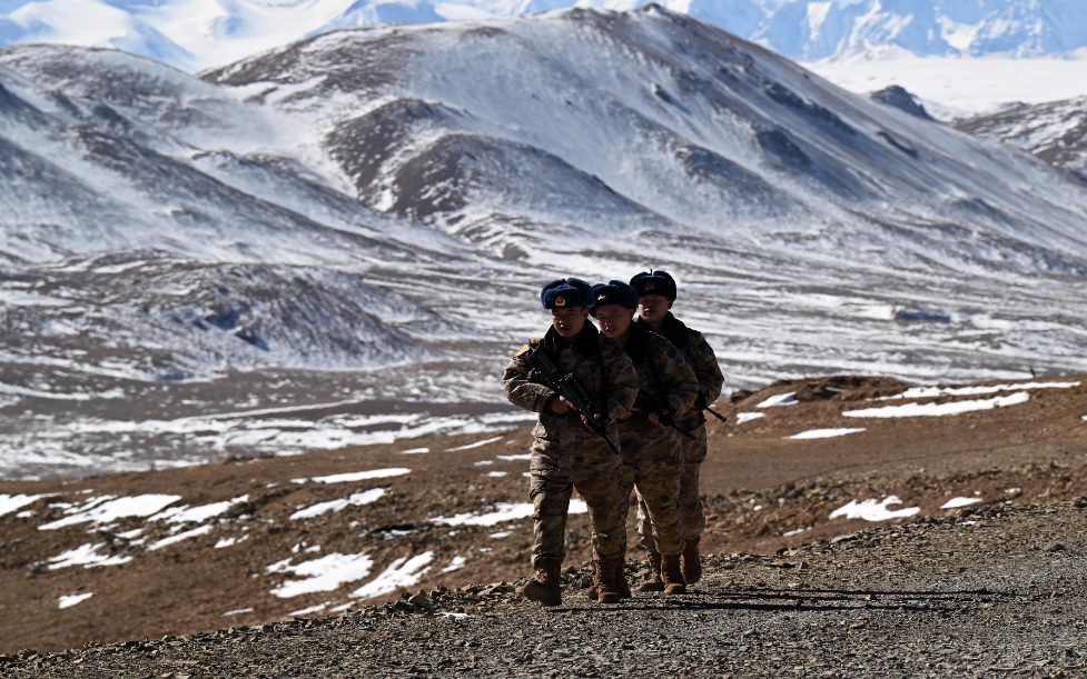 在海拔5000余米的雷达阵地上,蒙明涛和战友们进行巡逻。