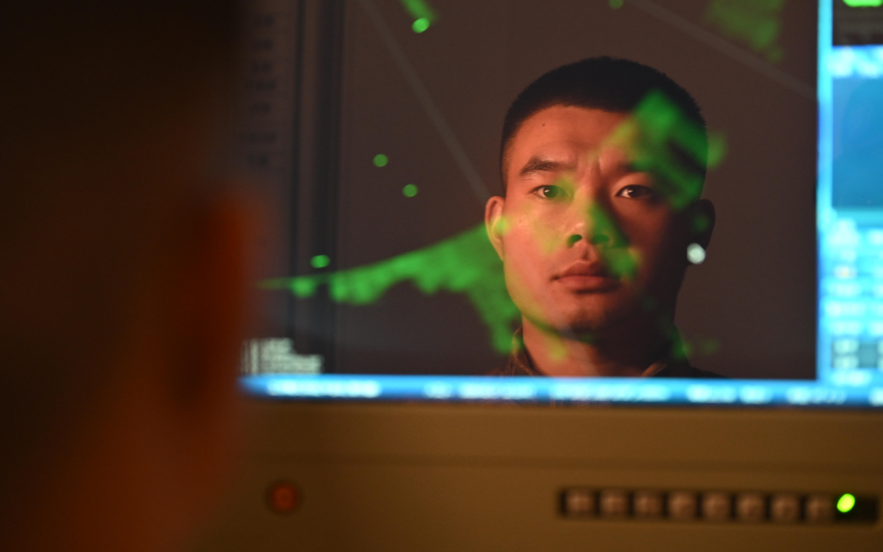 蒙明涛在进行战备值班。作为雷达操纵员,他炼就了一双“火眼金睛”,通过电波,警戒着祖国的西北空中安全。