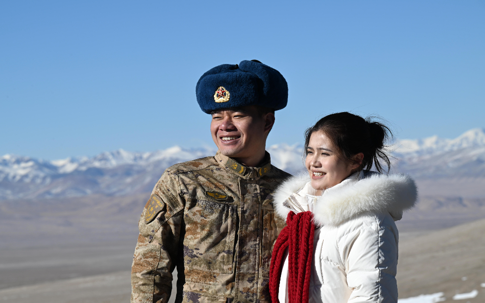 春节前夕,西部战区空军雷达某部二级上士蒙明涛的新婚妻子黄歆跨越近5000公里,从广西巴马来到喀喇昆仑某高山雷达站探亲。