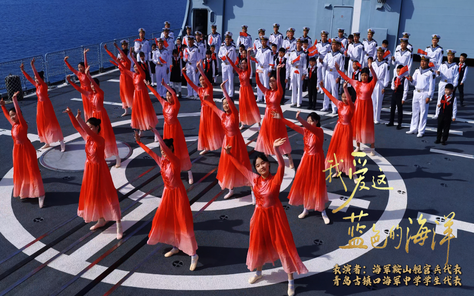 海军节前夕,青岛古镇口海军中学的少年们登上鞍山舰,与海军官兵代表并肩而立,在辽阔甲板上齐声高唱《我爱这蓝色的海洋》。歌声伴着海风飞扬,笑脸迎着浪花绽放,没有隔阂,不分你我,恰似一家人围坐团圆,暖意融融。少年眼中有崇敬,官兵眼里有温柔;校服洁白与浪花白交相辉映,稚嫩童声与铿锵军声融为一体。这是拥军爱军的深情告白,是红色基因的代代相传,更是军民鱼水情最动人的模样。以歌声致敬深蓝,以同心守护海疆,共祝人民海军生日快乐,万里海疆岁岁安澜。(赵林涛、杨馥铭、吴欣宇、李菁、陈彦宏)