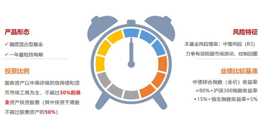 风险提示:本文章所涉及的基金产品不保证该基金一定盈利,也不保证最低收益,基金历史业绩不代表未来收益,基金管理人管理的其他基金的业绩并不构成基金业绩表现的保证。请投资者仔细阅读各基金《基金合同》、《招募说明书》及相关公告。文中基金为偏债混合型基金,长期来看,其预期风险和预期收益水平高于债券型基金,低于股票型基金。基金投资人在投资前请确认已知晓并理解该产品特性与相关风险,具有相应风险承受能力,谨慎投资,未经许可禁止转载或引用。