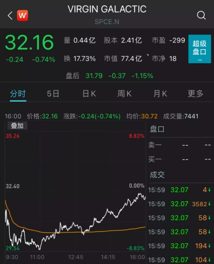 值得注意的是,当地时间7月20日,贝索斯成功飞上太空当日,亚马逊股价并未有明显表现,收盘时仅上涨0.66%;维珍银河低开后迅速下行,盘中一度跌逾8%,收盘时跌幅缩窄至0.74%。