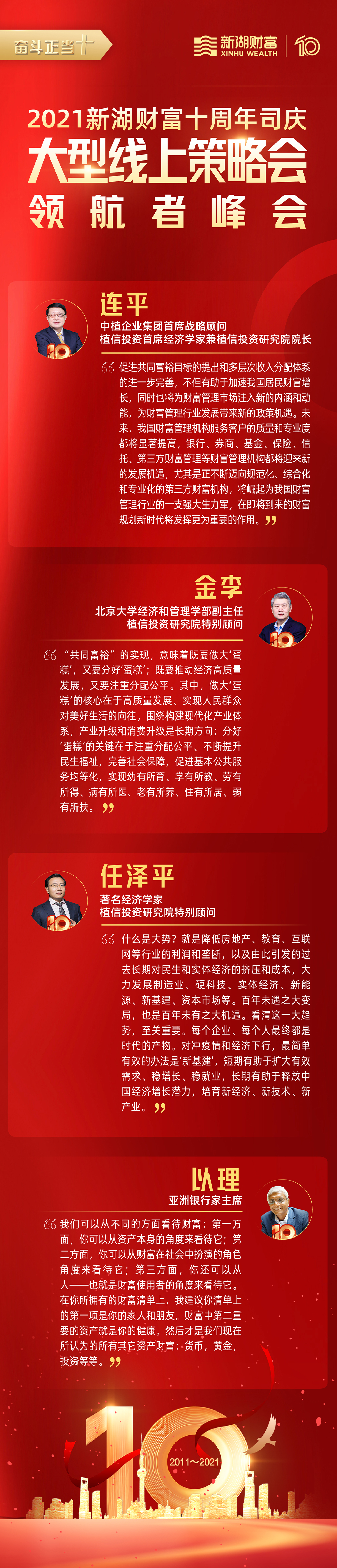 9月15日,“奋斗正当十”新湖财富十周年司庆大型线上策略会首场活动领航者峰会成功举行。多位重磅嘉宾与广大客户朋友相聚云端,共同畅享了一场探寻新时代财富增长之道的智慧盛宴。这场直播累计入场人次19.27万,点赞量9.24万,互动区累计评论量420余条,从满屏的生日祝福中,收获的不仅是十年来客户朋友对新湖财富的大力支持,更有未来与新湖财富继续携手前行的坚定信心。