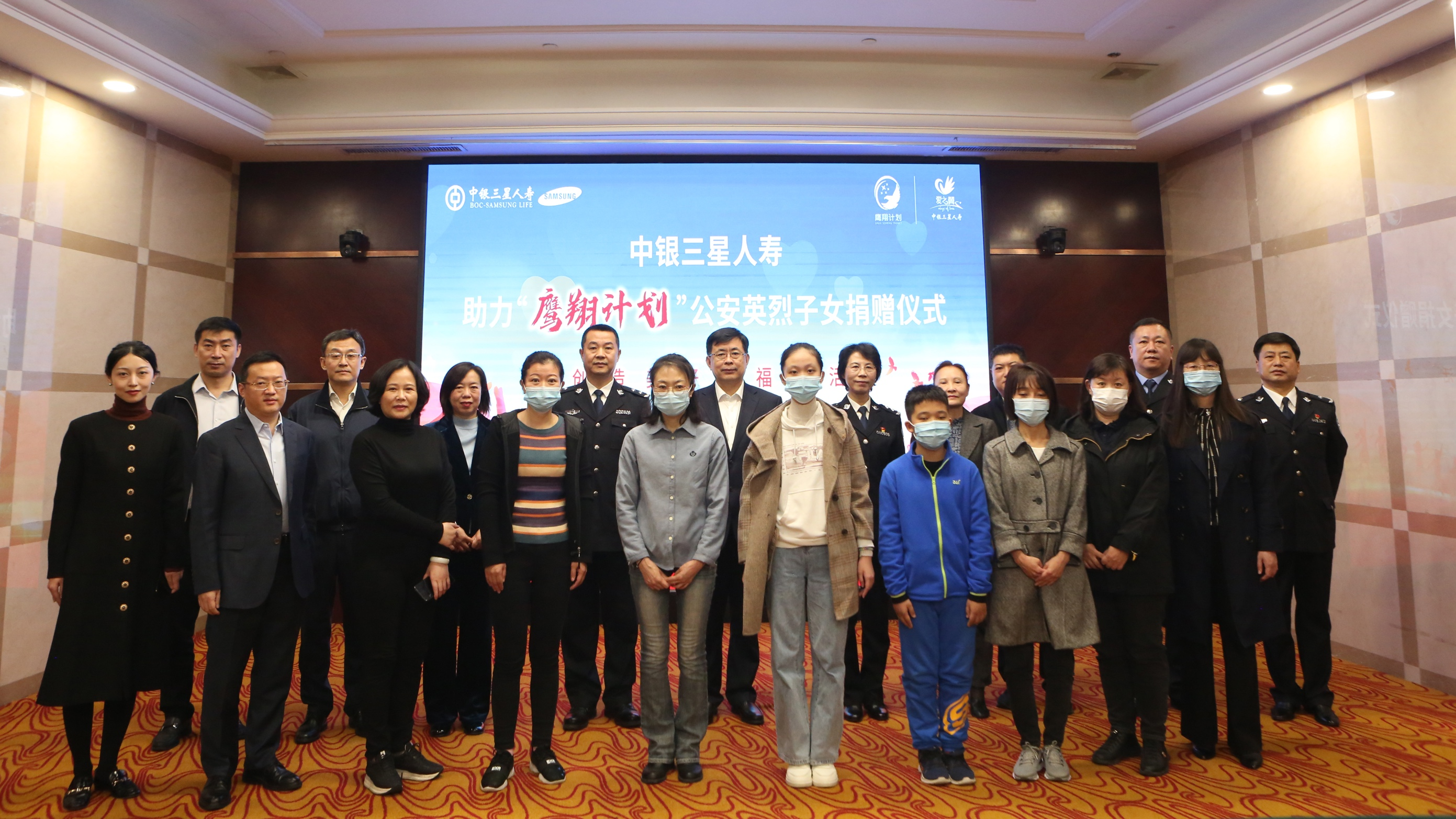 10月26日,中国儿童少年基金会“鹰翔计划”捐赠仪式在辽宁省沈阳市举办,中银三星人寿践行社会责任,捐赠首笔善款56.2万元。在中银三星人寿“爱之翼”公益品牌的助力下,鹰翔计划正式在辽宁省起飞,通过本次活动向124名公安英烈子女发放善款41.6万元,温暖扶助、定向关爱“鹰翔儿童”,守护孩子们健康成长。