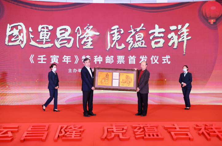 2022年1月5日,《壬寅年》特种邮票首发仪式在中国国家博物馆隆重举行。该套邮票设计者、著名艺术家冯大中,中国邮政集团有限公司党组书记、董事长刘爱力,国家博物馆馆长王春法,国家邮政局副局长戴应军,中华全国集邮联合会第七届理事会会长杨利民,农业农村部总畜牧师张天佐,清华大学美术学院院长、中国美术家协会副主席鲁晓波,中国邮政集团有限公司副总经理康宁,中国铁塔股份有限公司副总经理张权以及中国邮政战略合作伙伴和北京冬奥组委的领导嘉宾出席。