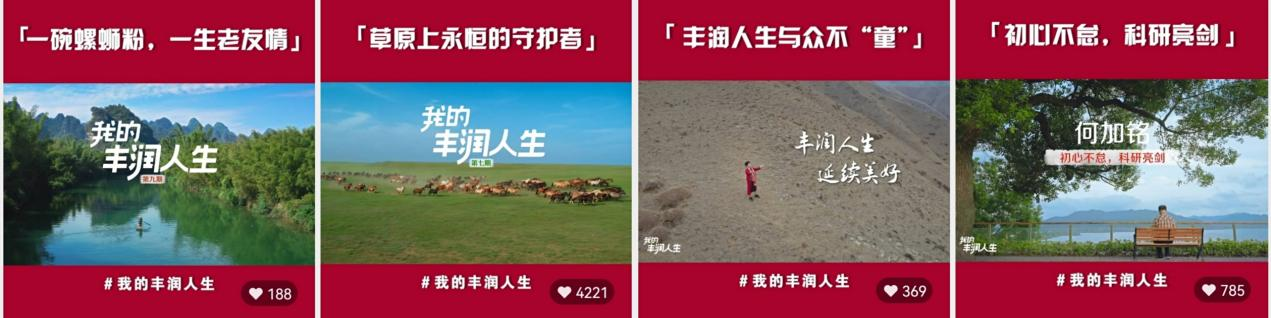除了物质生活,年长客户也更加注重精神生活的满足。2020年招行举办了“我的丰润人生”重阳风采大赛,面向全国招行金葵花客户征集照片和故事,共收到千余份来稿,最终按照投票结果评选出了 33名“丰润大使”。此后,招行将丰润客户的生活与事迹拍摄成“我的丰润人生”专题VLOG,展现全国各地丰润客户的风采——他们中有挥洒青春热血,为中国体育事业奋斗的中国第一代女排成员白瑞芝;有秉持初心带领团队攻克难题,胸怀祖国的科研学霸爷爷何加铭;有勇于尝试新生事物、热爱户外运动和摄影的退休商人彭延平;有不畏年龄定义开启超模“开挂人生”的优雅奶奶冬日光;有在本该退休年龄却为了梦想搏击商海的“铿锵玫瑰”吴爱华……“我的丰润人生”专题VLOG系列在年长客户中引发了强烈共鸣,他们在过往人生中为国家和社会贡献了光和热,退休之后依然在各个领域绽放光彩,让无数同龄人乃至年轻人为他们的精彩人生点赞。