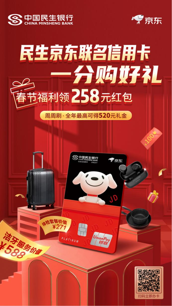 1月21日,民生银行与京东集团联合发行的首张京东品牌级联名信用卡---民生·京东联名信用卡上线。