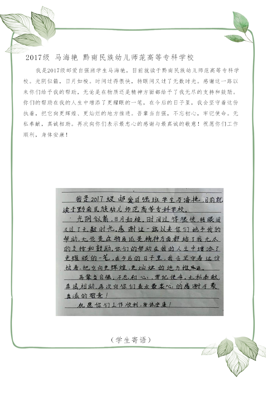 毕业生小马:感谢这一路以来你们给予我的帮助,无论是在物质还是精神方面都给予了我无尽的支持和鼓励。