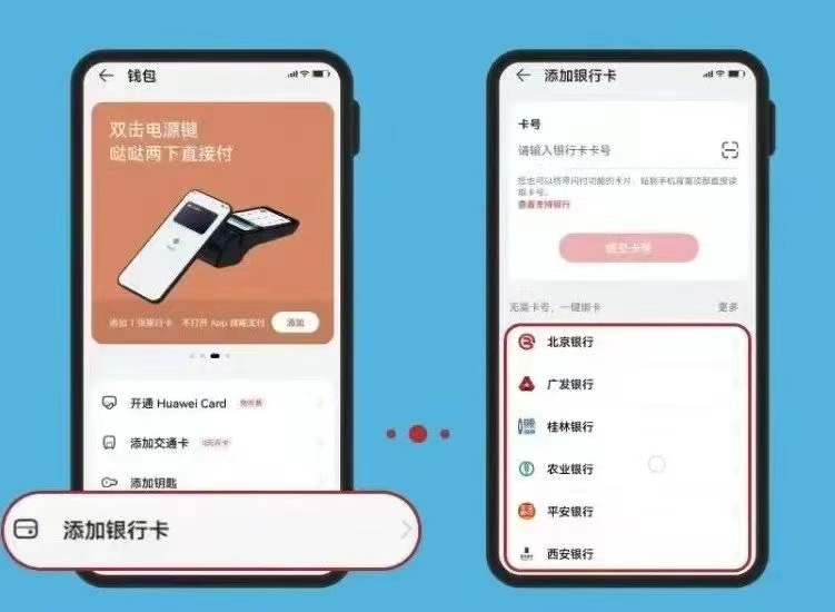 在绑卡阶段,用户将系统自带钱包升级到最新版本,点击添加银行卡,经身份安全验证和授权,免输卡号实现签约绑卡,用户支付体验得到进一步提升。当前,交通银行、农业银行、邮储银行、中信银行、浦发银行、民生银行、华夏银行、平安银行、广发银行、北京银行、南京银行、哈尔滨银行、大连银行、济宁银行、齐鲁银行、东亚银行、泰隆银行、民泰银行等商业银行已支持该功能。