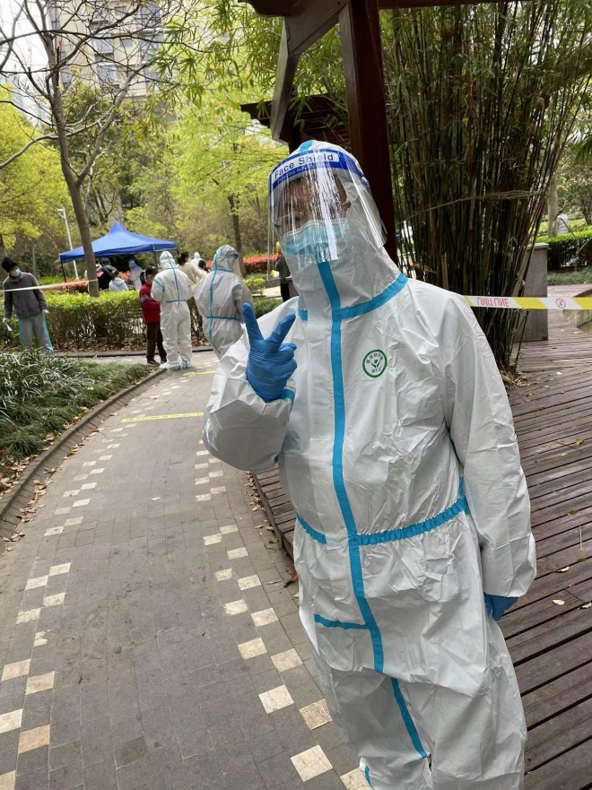 虽然穿着密不透风的防护服常常一站就是5到6小时,但吕伟觉得在自己能力范围内为上海疫情防控工作尽一份微薄之力都是他应该做的。
