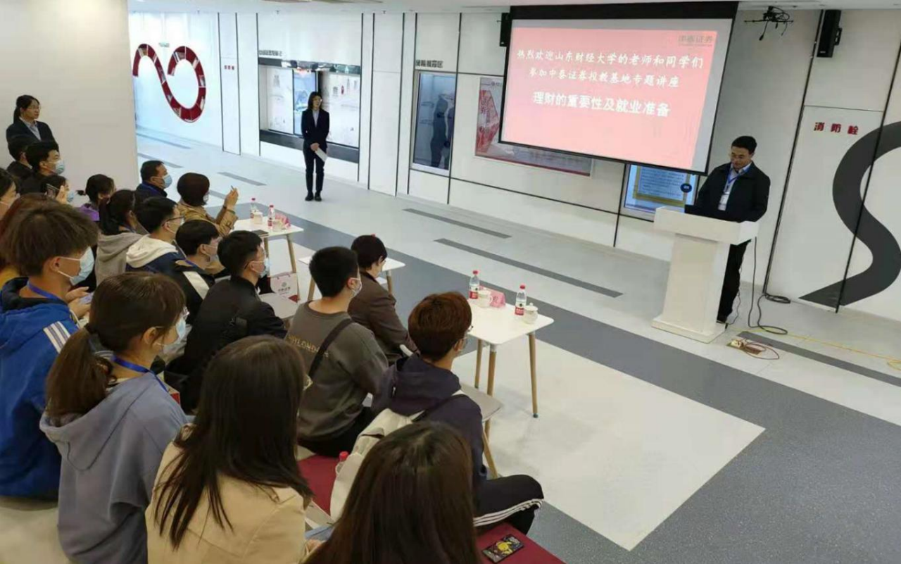 随后,基地举办了以“理财的重要性及就业准备”为主题的专题讲座,本次讲座由中泰证券首席投资顾问、投教基地讲师尤文静主讲,她从“为什么要理财”“理财前的准备及产品介绍”“远离‘校园贷’”“就业准备”等四个方面向大家介绍了理财的重要性、理财观念的培养和如何在就业过程中增强自身优势等。讲座完成后,尤老师与同学们进行了互动。
