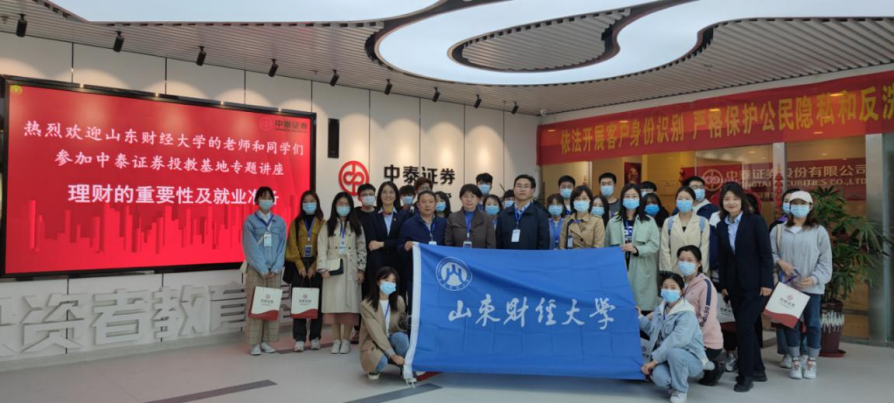 4月13日,山东财经大学学生工作处处长王剑、金融学院党委副书记范志毅带领30余名师生走进中泰证券投资者教育基地参观学习。