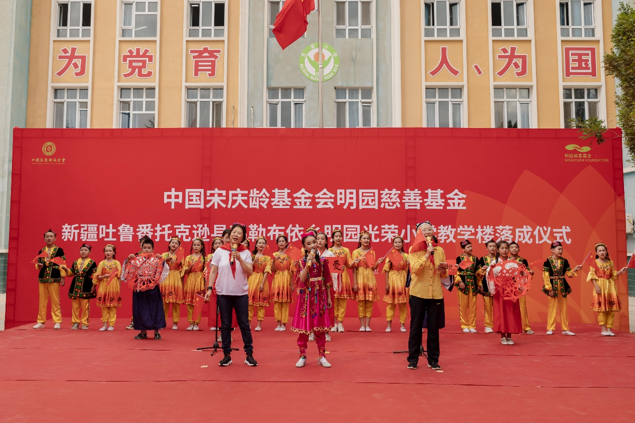 6月7日至8日,由中国宋庆龄基金会明园慈善基金(下称“明园基金”)援建的吐鲁番郭勒布依乡明园学校教学楼和阿勒泰喀尔交镇牧业寄宿学校宿舍楼正式落成。明园基金副理事长陈园、明园基金理事以及当地领导共同出席了落成仪式, 并为两所明园学校揭牌。