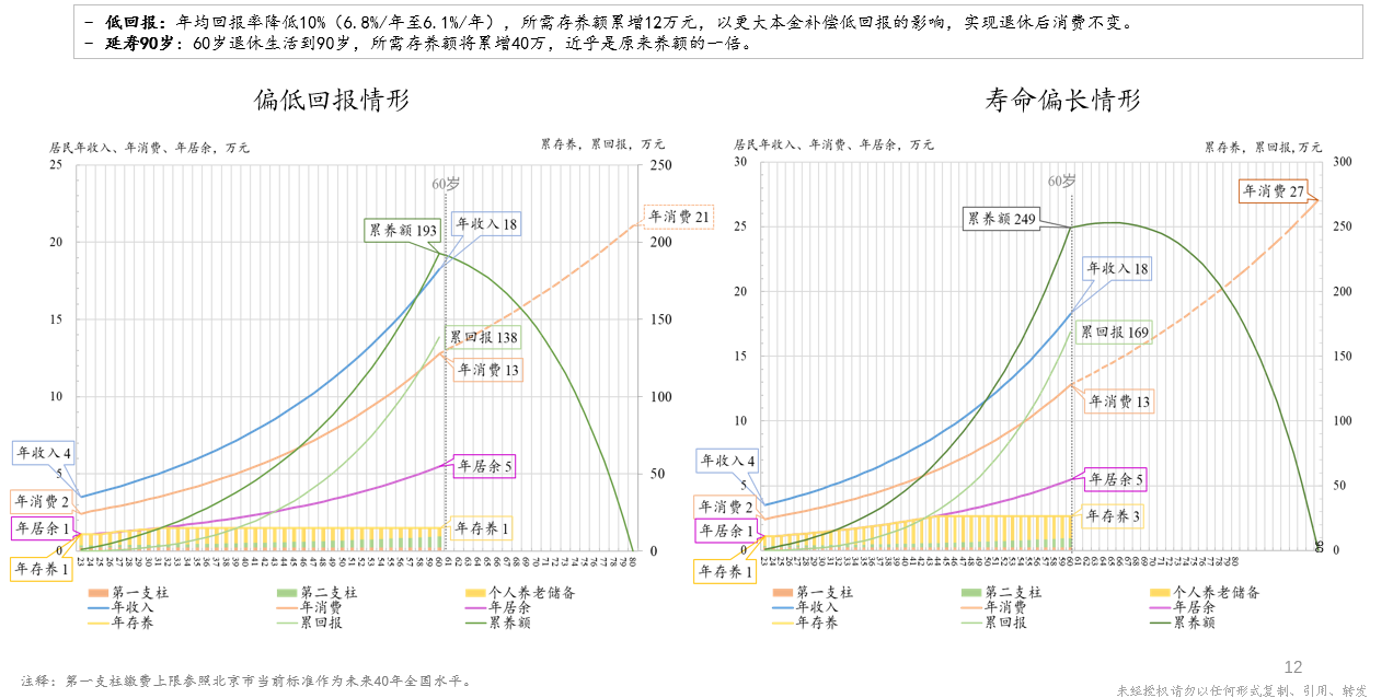 图10 个人养老金推算模型——偏低回报情形与寿命偏长情形