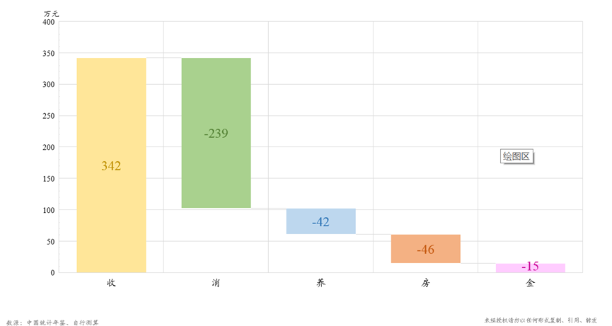 另外,从个人全生命周期的收入及支出结构来看,全国平均个人工作40年的平均总收入约为340万元,其中仅需要支付40余万元用于养老,剩下的239万元用于消费,46万元用于购置房产等,25万元用于金融投资。也就是说,从个人平均收支结余的角度来看,年均存缴一万余元用于养老也是可以接受的,不会特别影响其他开支。
