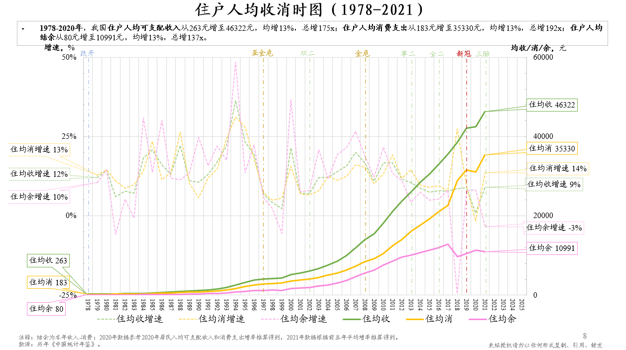 图7 住户人均收消时图(1978-2021)
