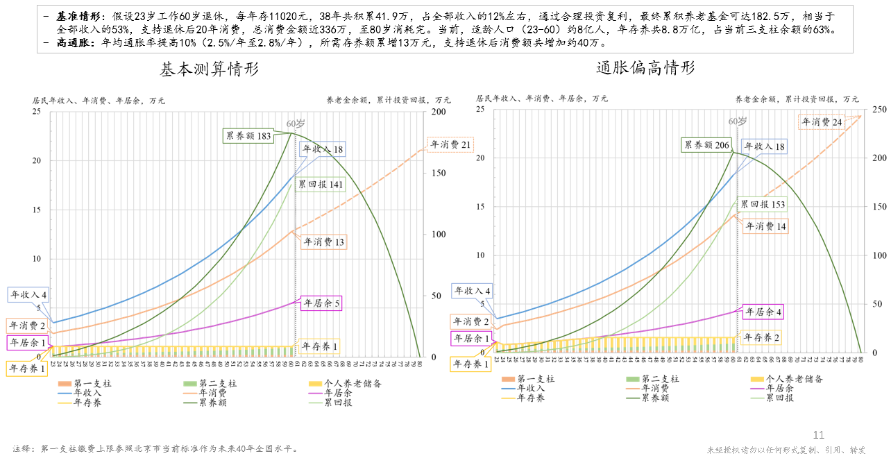 图9 个人养老金推算模型——基本测算情形与通胀偏高情形