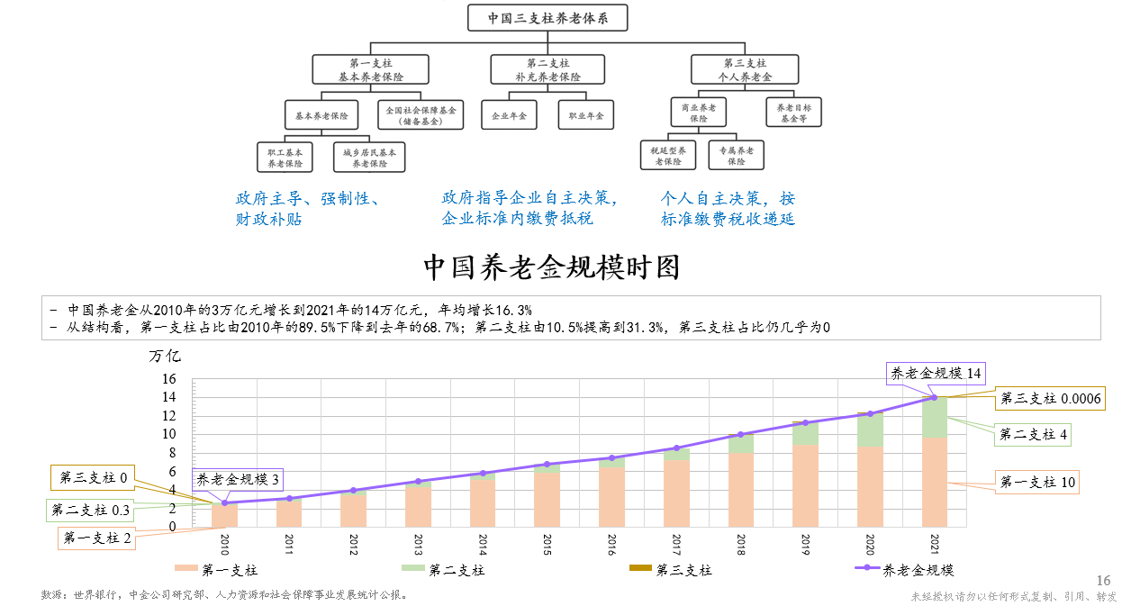 总之,通过构建模型尝试测算让我们有了信心,亦可让我们明白个人养老金制度是有机会解决我国养老问题的,需要朝着这个方向努力发展。而且,模型也让我们对个人养老储备的整体规模有了一定的概念,从而也有了一个参考标尺,能够帮助我们理解问题。