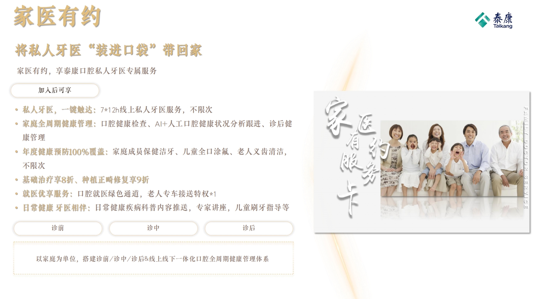 与此同时,“泰康口腔”依托于泰康拜博口腔全国布局的服务网络、全国专科专家轮诊模式、私人牙医服务体系、全国质保等机制,家庭为单位的长期陪伴式口腔健康服务,确保为消费者提供更安心、更便捷、高品质的口腔健康管理服务。