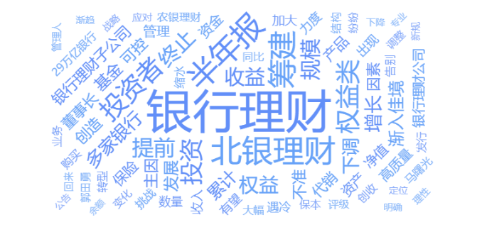 本时段内,获得媒体及公众广泛关注的舆情热词有 “银行理财”“北银理财”“半年报”“筹建”“权益类”等。