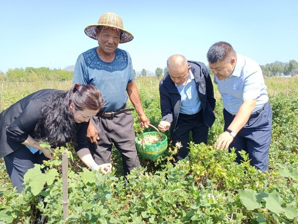 中国人寿财险菏泽市中心支公司相关技术人员与种植户研究金银花的生长规律和可能遇到的灾害情况