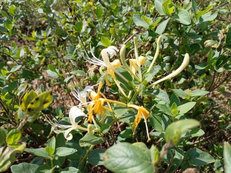 平邑县流峪镇漫山遍野的金银花喷绿吐翠,盛开的小花黄白相间,争奇斗艳,似繁星点点